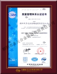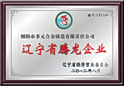 公司于2001年通過(guò)IS9001-2000質(zhì)量管理體系認(rèn)證,生產(chǎn)的多元牌高錳鋼鑄件于2005年榮獲"遼寧省名牌產(chǎn)品"稱號(hào)。